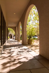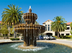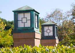 The project features a Grand Boulevard lined with poplar trees, fountains in every courtyard, arcades, and a central four-building quadrangle. The two-story buildings feature pre-cast, sand-blasted concrete panels with slate roofs, and are designed to accommodate single or multi-tenant requirements. (Google has substantially modified the landscape plan for their purposes).